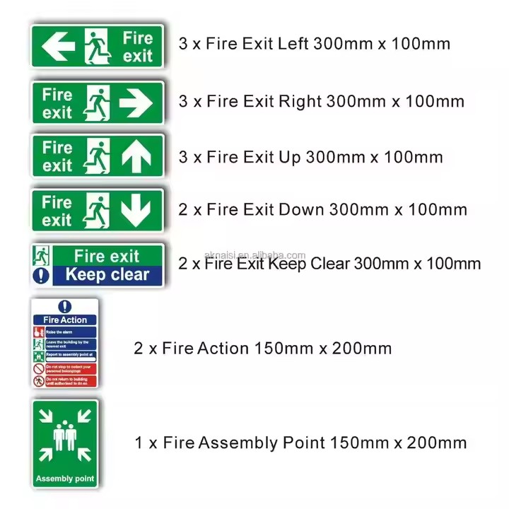 Fire Exit Keep Clear Sign, Fire Safety Signs, Fire Door Signs 16 pcs per set